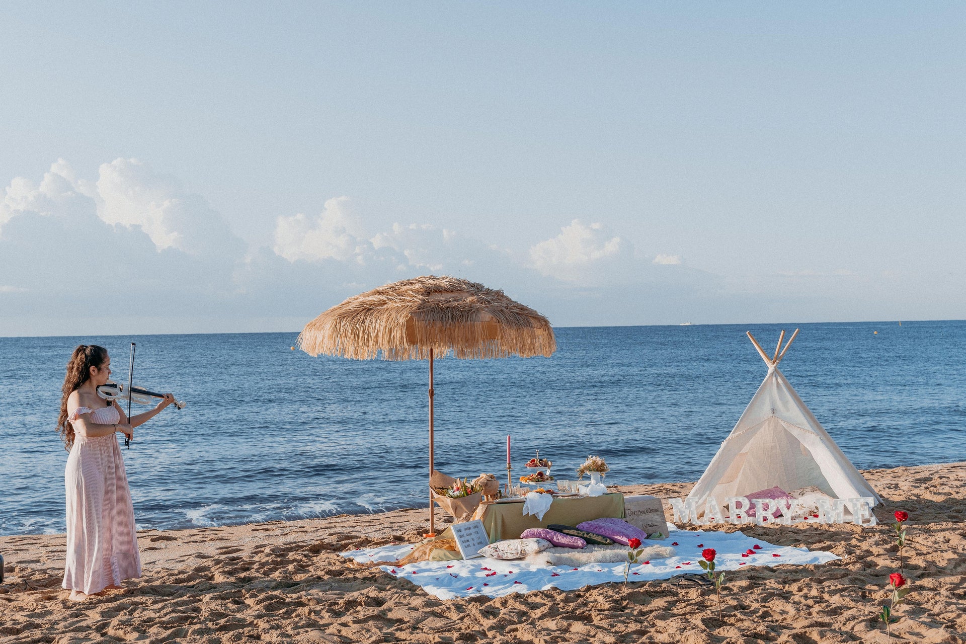 Meet the enchanting maestro of melodies! Based right here in the vibrant heartbeat of Barcelona, she is not your ordinary violinist. Our violinist plays a blend of electric and acoustic artistry. Whether it is a proposal in Barcelona, a picnic with your loved ones or any event you are hosting, Angie adds that touch of musical magic.