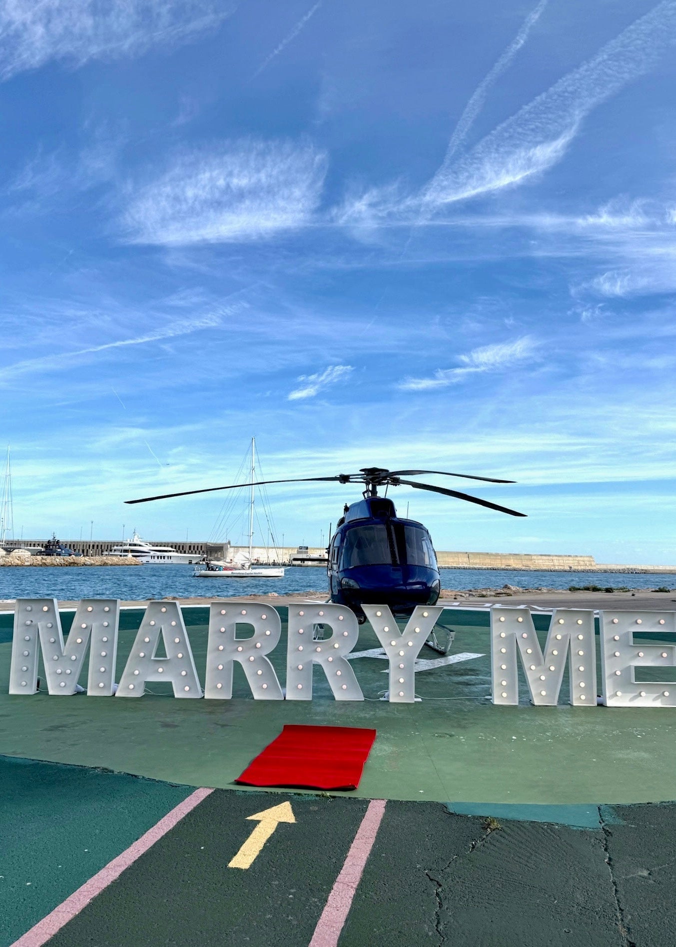 Proposal Decoration - XXL Marry Me Letters & Helicopter ride - Barcelona