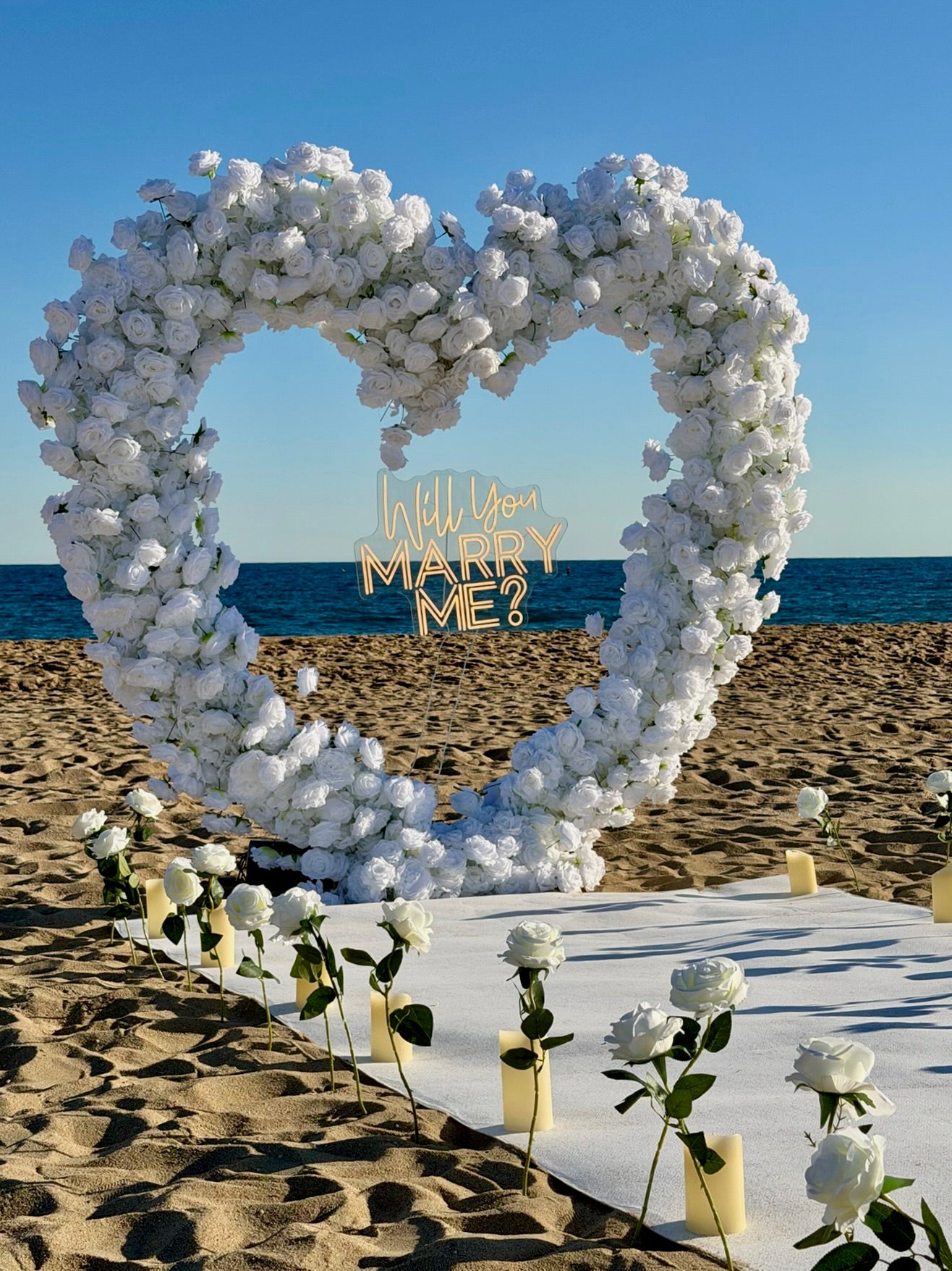 Looking for an unforgettable way to propose in Barcelona? Our proposal picnic, featuring a stunning big flower heart, is the perfect choice! We’ll set up a beautifully styled picnic, either on the beach or indoors, creating a romantic atmosphere for your unforgettable proposal moment in Barcelona.