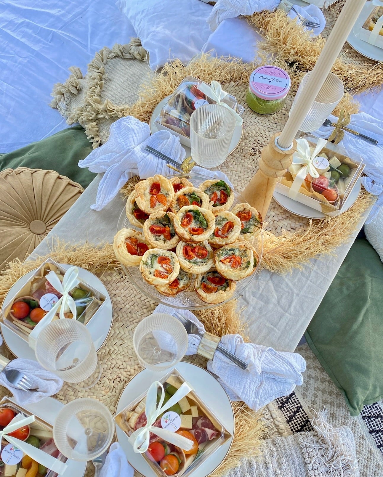 Con porciones perfectas para compartir fácilmente, nuestras quiches son una opción sencilla para cualquier reunión. Cada plato o caja para llevar incluye una variedad de quiches vegetarianas caseras, elaboradas con los mejores ingredientes locales, lo que garantiza un capricho delicioso y satisfactorio.